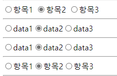 radiobutton은 checkbox와 동일 형식이지만 중복 선택이 안된다.