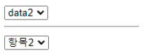 - select의 옵션을 넣어준다. 총 3개지의 옵션이 생성되고, value값이 "data2"인 옵션이 default로 선택된다.