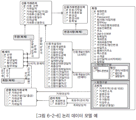 개념 모델링 단계에서 도출되지 않은 엔터티가 도출되어야 한다. - 누가, 어떻게 데이터에 접근하는지 등이 핵심이다.