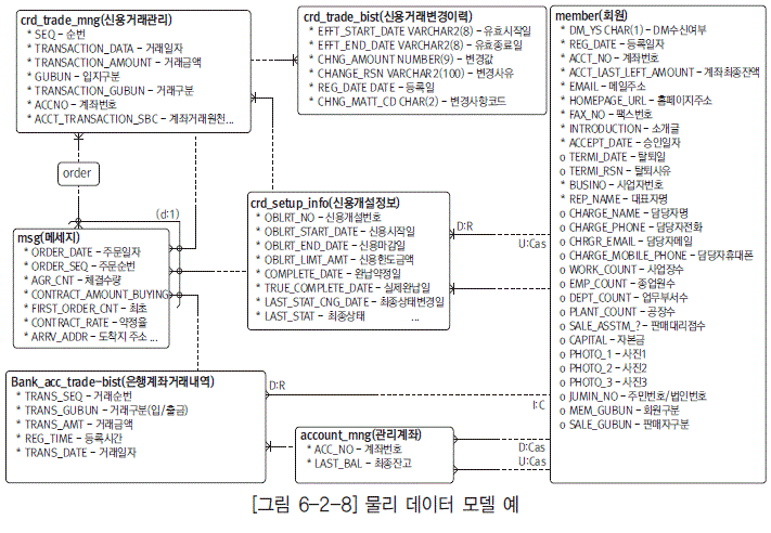 핵심 엔터티와 그 엔터티 사이의 관계를 도출하는 것이다. - 개념 모델에 표현되었던 엔터티는 논리·물리 모델에서도 똑같은 구조를 이루어야 한다.