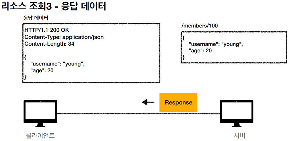 위 예시는 리소스를 JSON으로 나타내었다.