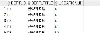SELECT DC.* FROM DEPT_COPY DC; -- LNAME 칼럼 추가 ALTER TABLE DEPT_COPY ADD (LNAME VARCHAR2(20));
