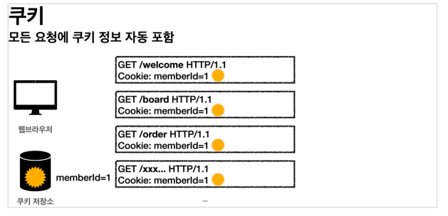- 페이지 요청할 때마다 쿠키 정보를 서버에 전달