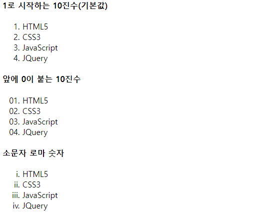 list-style-type - 순서 있는 목록 스타일