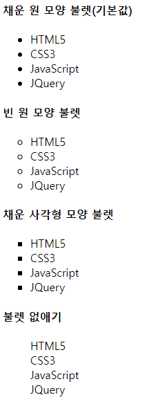 - list-style-type - 순서 없는 목록 스타일