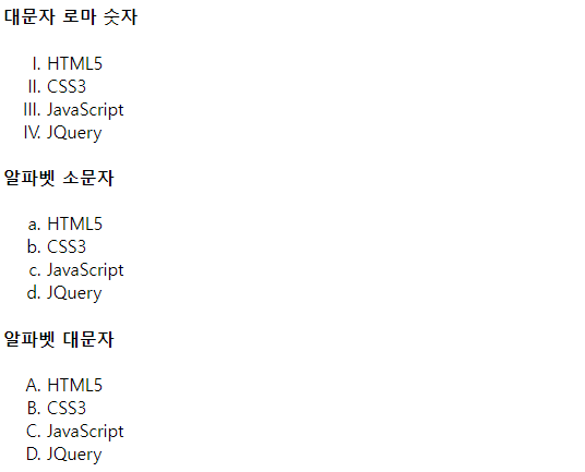 - upper-alpha : 알파벳 대문자