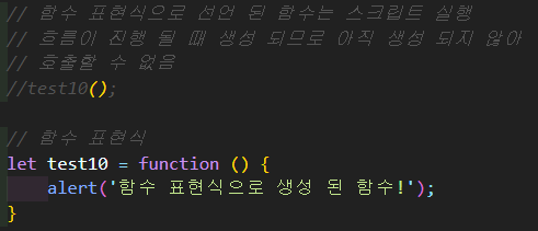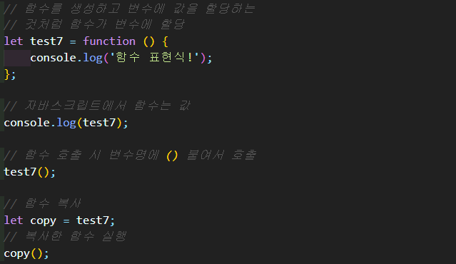 function에 함수 명을 작성하지 않고 변수에 대입하는 방법(함수 표현식)이 있음