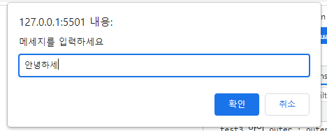 // 외부 변수 선언 let outer = 'outer'; function test3 () { // 함수 내부에서 외부 변수 접근 가능 console.log('test3 안의 outer : ' + outer); outer = 'changed outer'; } test3(); // 접근 뿐 아니라 값 수정도 가능 console.log('test3 호출 후 outer : ' + outer); - 같은 변수명을 가진 지역 변수와 외부 변수가 있을 경우