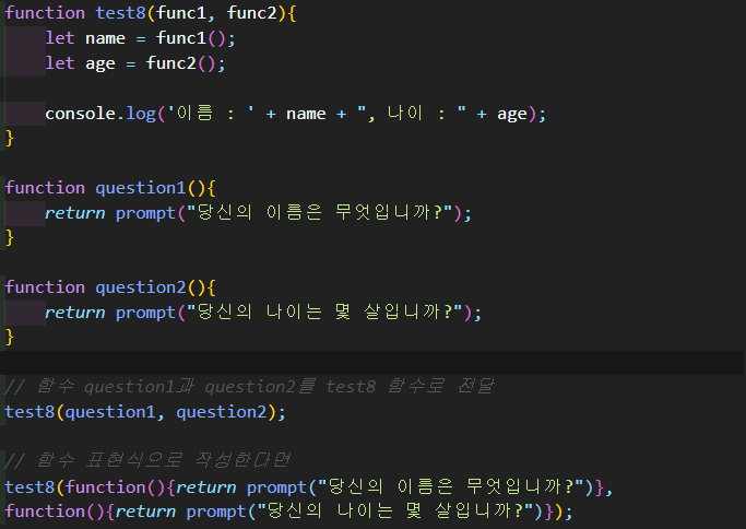 콜백 함수 - 매개변수로 넘겨진 함수